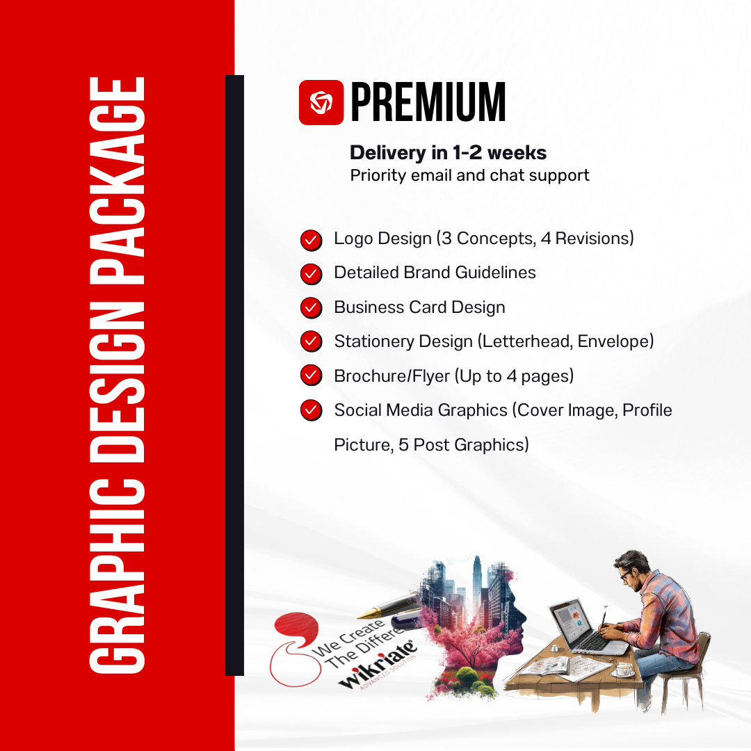 Our Premium Graphic Design Package is designed for businesses looking for a comprehensive and high-impact branding solution. This package includes: